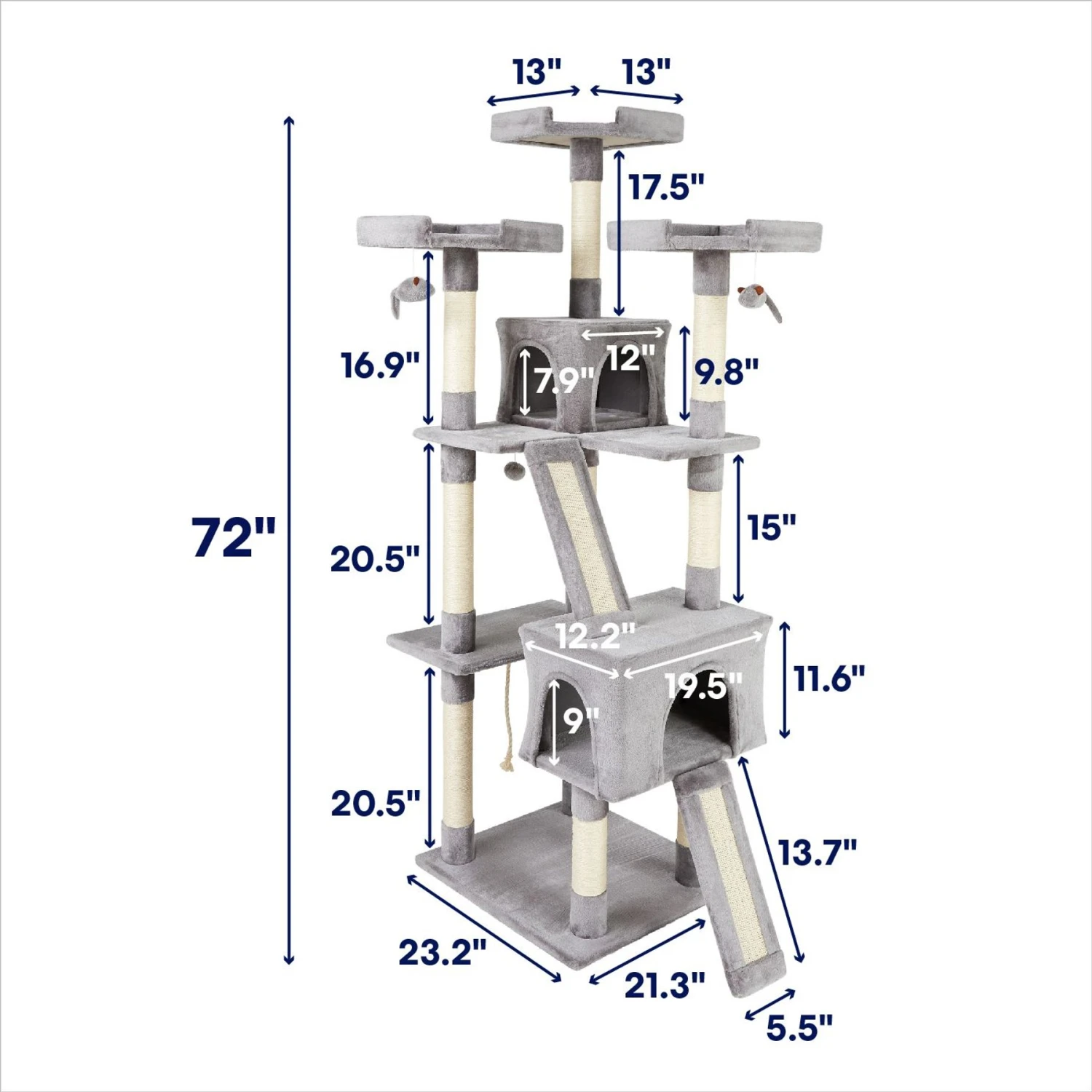 - Ten fully wrapped sisal scratching posts give extra space for scratching—plus, two scratch board ramps make this great for multi-cat households.